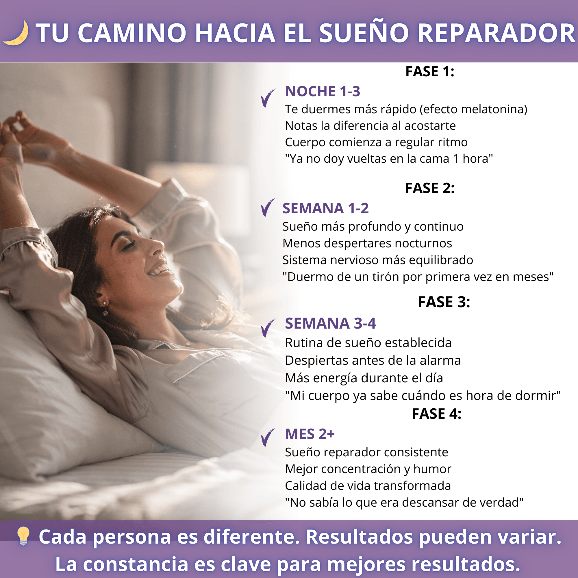 ❌ Llevas en la cama desde las 11 y a las 2 de la madrugada sigues con los ojos abiertos ❌ Tu mente no para — el trabajo, los pendientes, las preocupaciones no se apagan solas ❌ Te despiertas 3 o 4 veces por noche y al sonar el despertador sientes que no has dormido nada ❌ Has probado infusiones, meditaciones y apps de sueño y nada funciona de forma consistente ❌ Las pastillas con receta te dejan atontado o te generan dependencia y no quieres ese camino